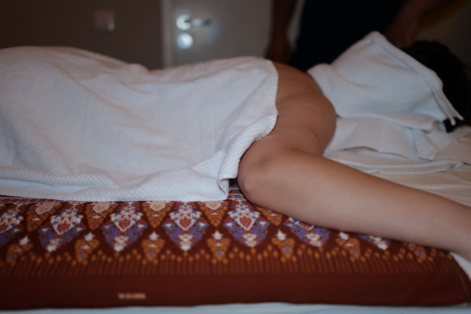Our soothing full-body massage is performed using a high-quality, organic, skin-nourishing oil. You’ll wear your underwear during the treatment. Any parts of your body not being massaged will be covered with towels to keep you covered and your body warm.